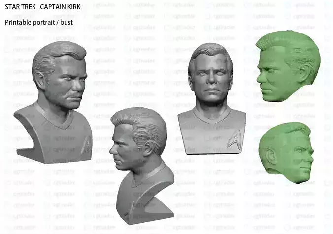 Captain Kirk bust and action figure head for 3D printing. Availible on cgtrader exclusivly NOT to be sold on other websites.