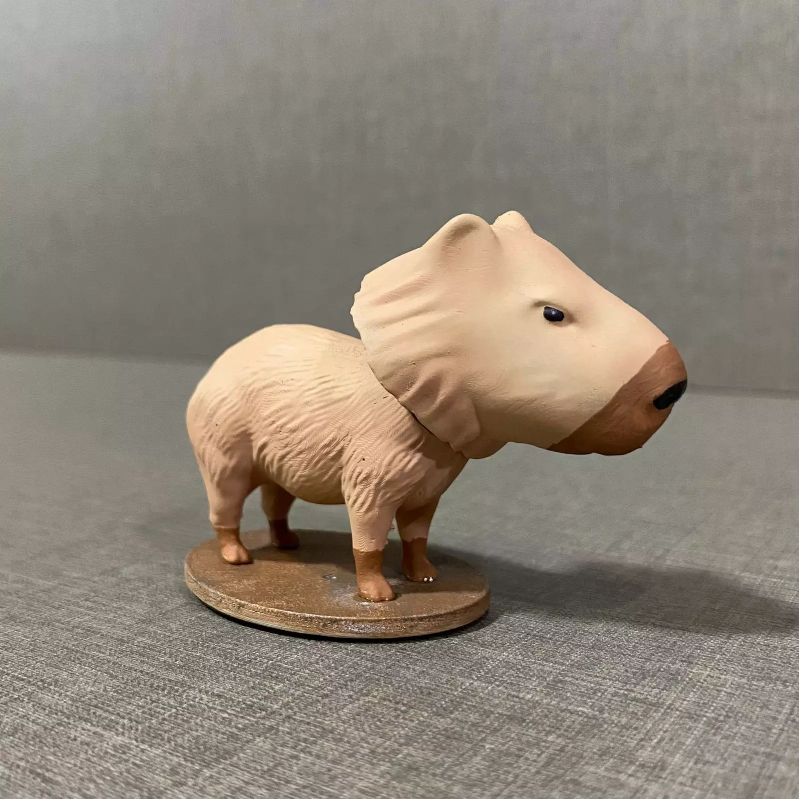 Texture: Detailed surface to simulate the capybara’s short fur, with subtle color variations (shades of brown and beige).