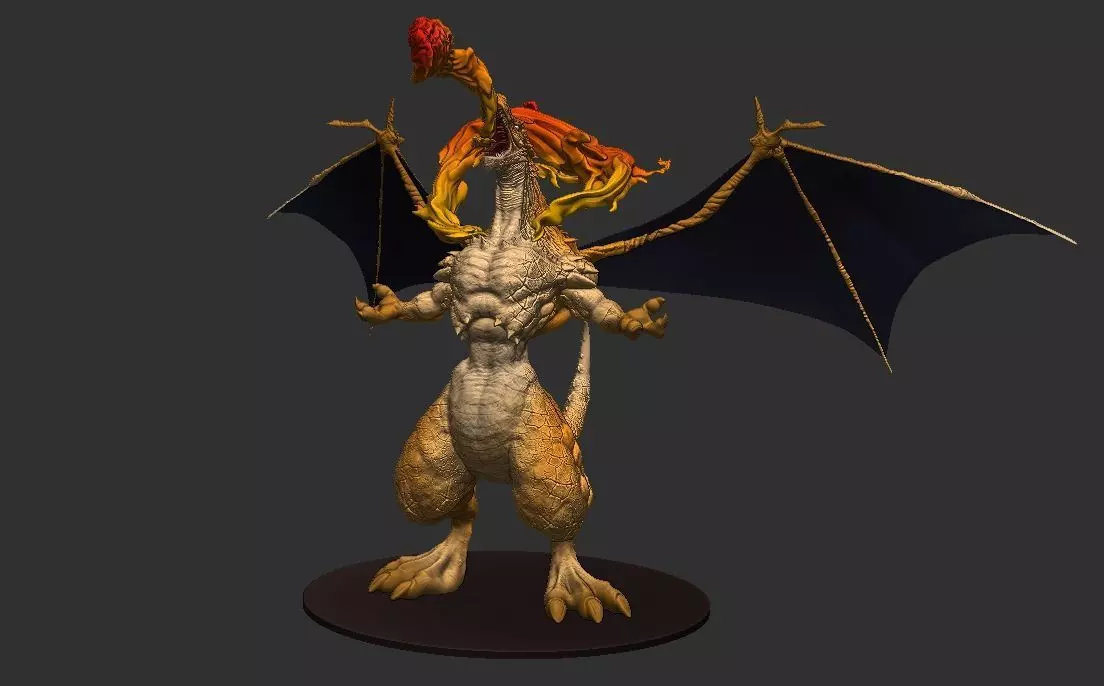 Charizard - Fanart - PokemonStl and Fbx Archive of charizard Fan art sculpture. I dont really own a 3D Printer and ahve little to no experience on the field; so in order to get the model 3D print Ready I made some cuts in de sculpt after decemination in order to get a lower polycount and for you guys to have better grip on the pieces. The STL Folder is separated into pieces, but if you want to join them go for the Fbx archive.