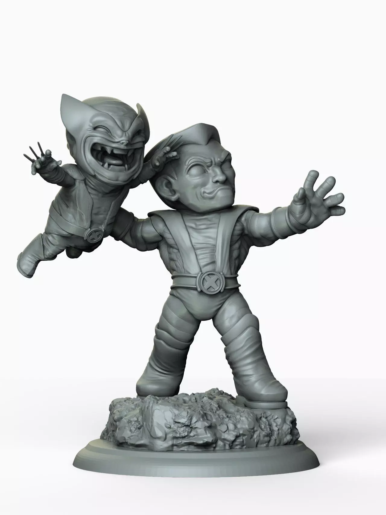 caricature of colossus and wolverine , thinking on a funny moment. statue for 11-inch print, ready for printing by parts, includes objfile, mtl, stl ,ztl. any doubt, i will be happy to answer it, i hope you enjoy it.