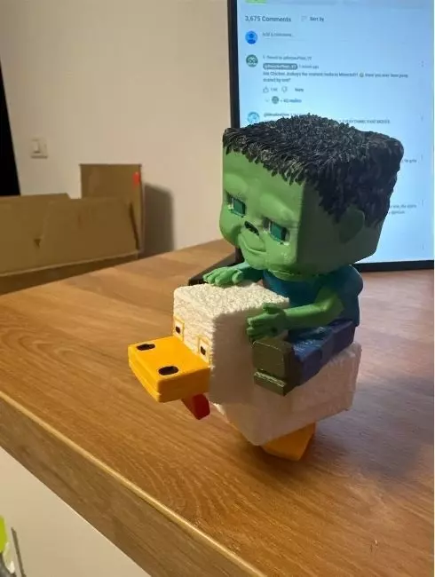 Bring the chaotic charm of Minecraft to life with this highly detailed Chicken Jockey 3D model! This fan-favorite mob duo features a baby zombie or baby zombie pigman riding atop a frantic chicken, perfectly capturing their quirky in-game behavior.