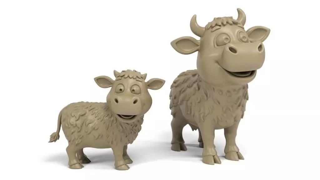 The Cow and Calf Cartoon model captures a playful and whimsical look, highlighting the joy and innocence of these characters. The friendly expressions are crafted to bring a smile while evoking a sense of cherished companionship.