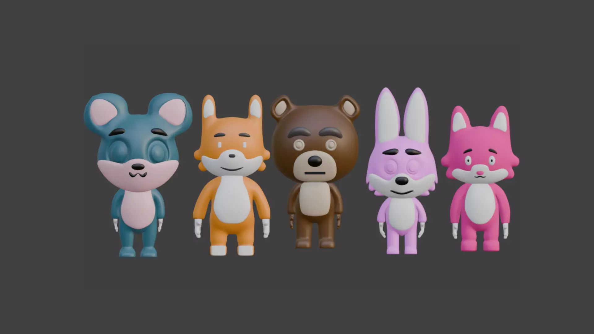 Cute Animal Character Pack – 5 Stylized Chibi 3D Models (STL, Blender, Printable)