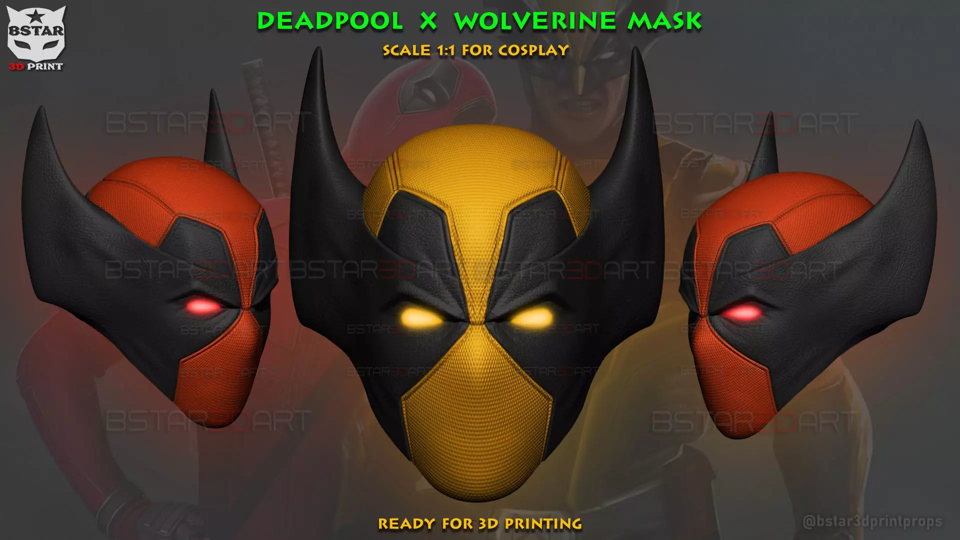 Deadpool X Wolverine Mask - Marvel Comic - scale 1:1 For cosplay or custom Figure