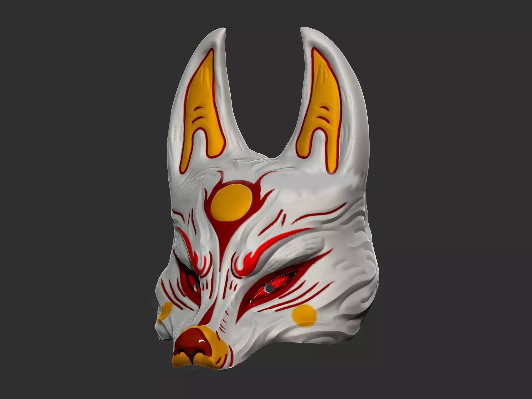 Japanese Kitsune Fox Mask Demon Cosplay Helmet STL 3D Print File