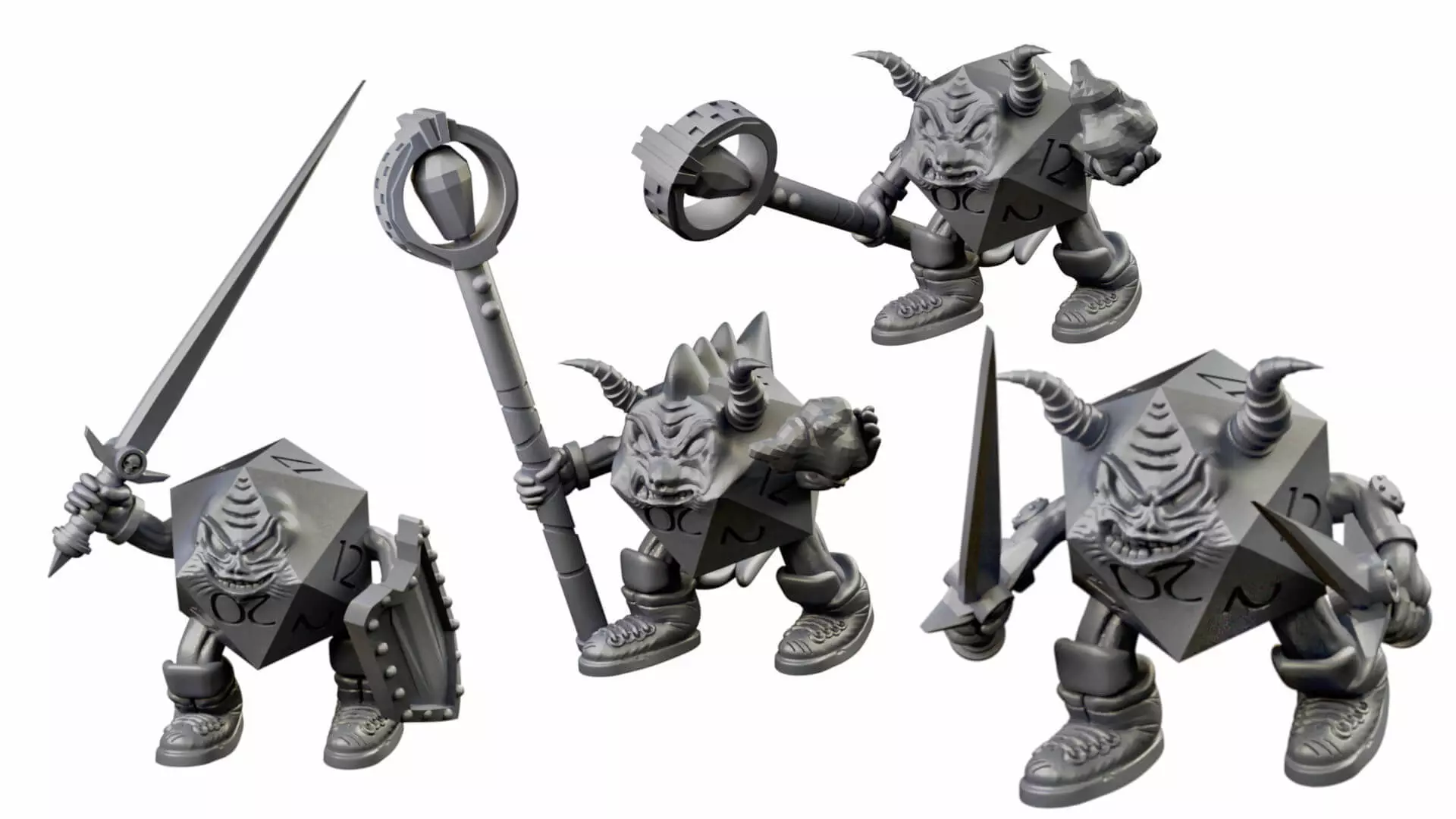 A series of dice heroes with Lychee project files for resin pre-supported prints.