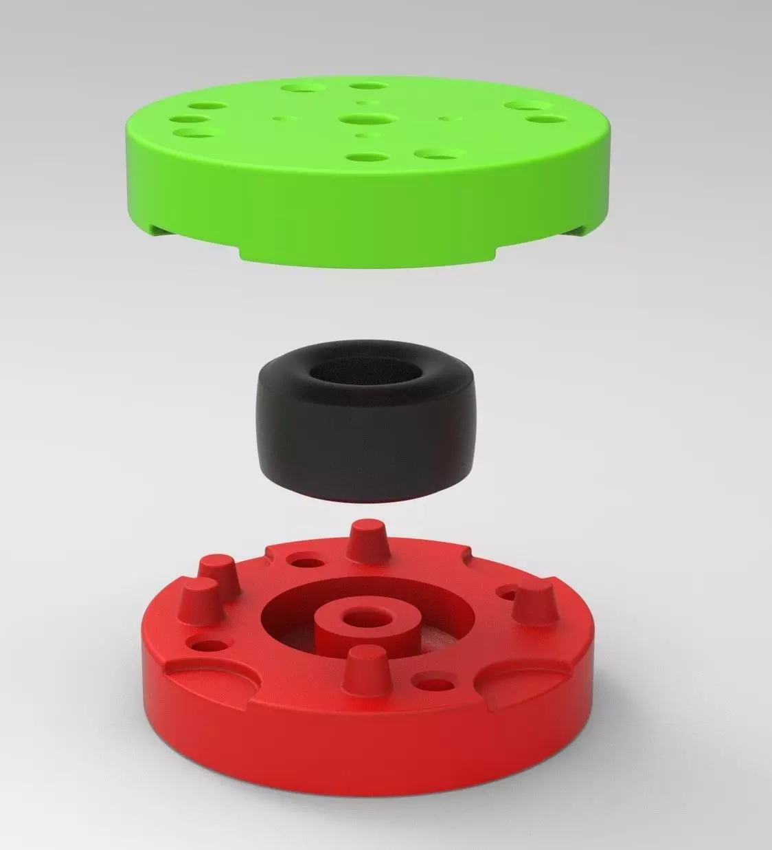 The bottom mold part has 5 special bosses and Top mold part has 5 special holes to guide mold parts in the closed state. Also, there are 4 slots for better opening with a screwdriver or similar instrument.In the Top mold part are 4 small holes for material injection.Both mold parts have 4 holes with diameter 6 mm for bolting it in closed state.Note! Only the mold! This is not a tire!