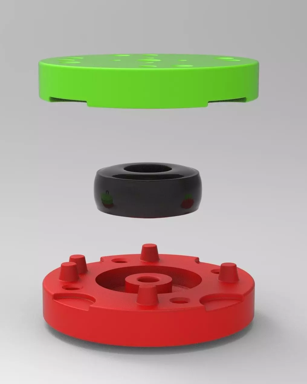 The bottom mold part has 5 special bosses and Top mold part has 5 special holes to guide mold parts in the closed state. Also, there are 4 slots for better opening with a screwdriver or similar instrument.In the Top mold part are 4 small holes for material injection.Both mold parts have 4 holes with diameter 6 mm for bolting it in closed state.Note! Only the mold! This is not a tire!