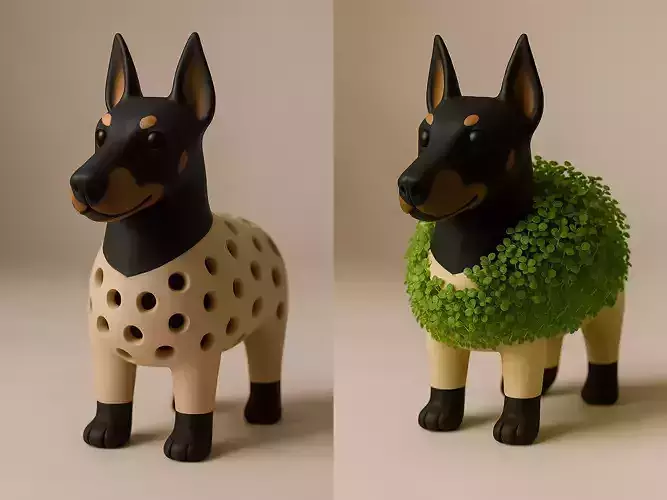 Doberman dog Sprouter Seed Chia Radish Lentil Germinator toy 3D print model