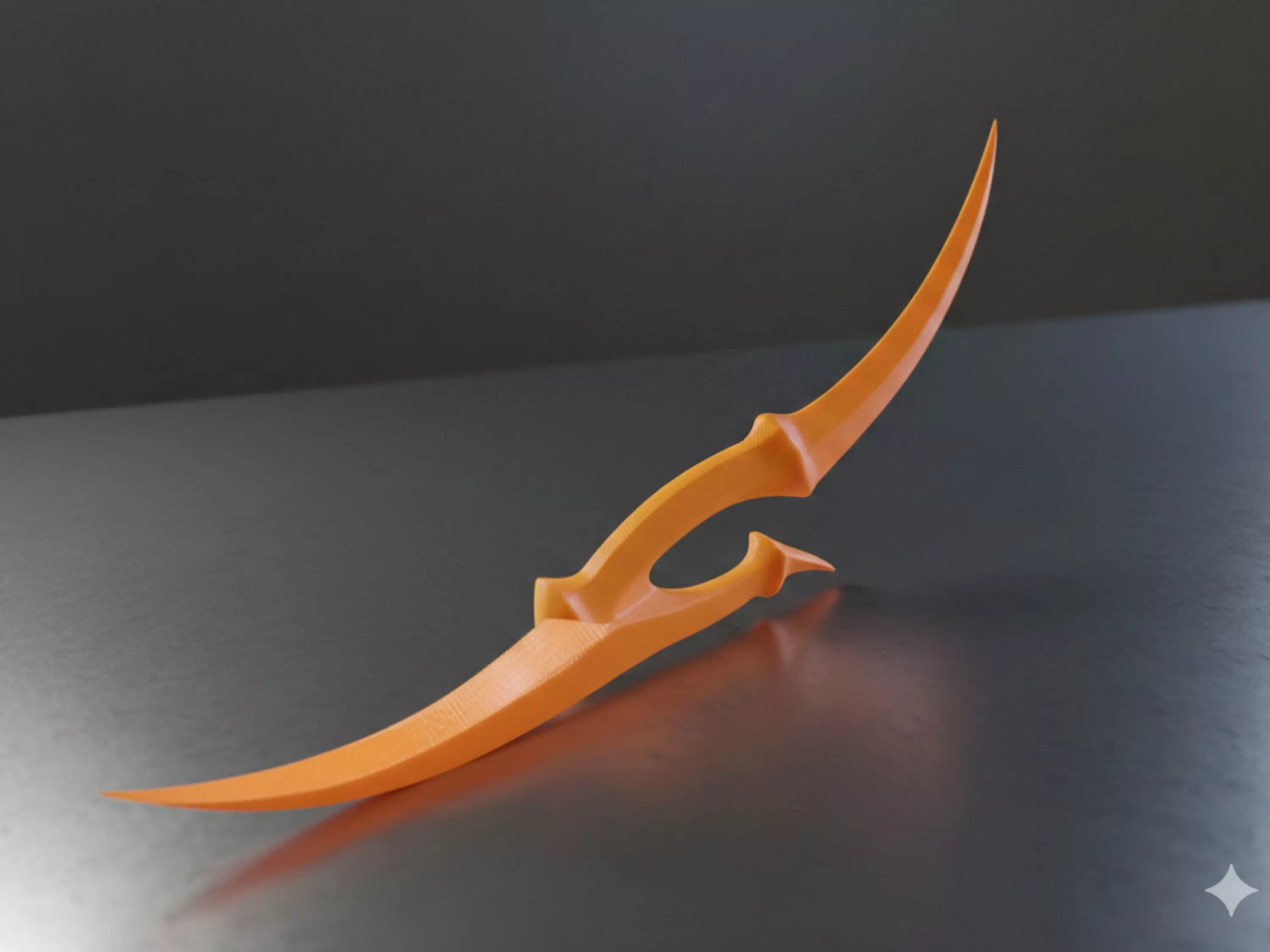 Designed by Spidex 3D Studio, this double-sided fantasy dagger features a sleek, aerodynamic design perfect for assassin-class cosplays or dark fantasy displays. The organic curves and sharp geometry make it a standout piece for any 3D printing enthusiast.