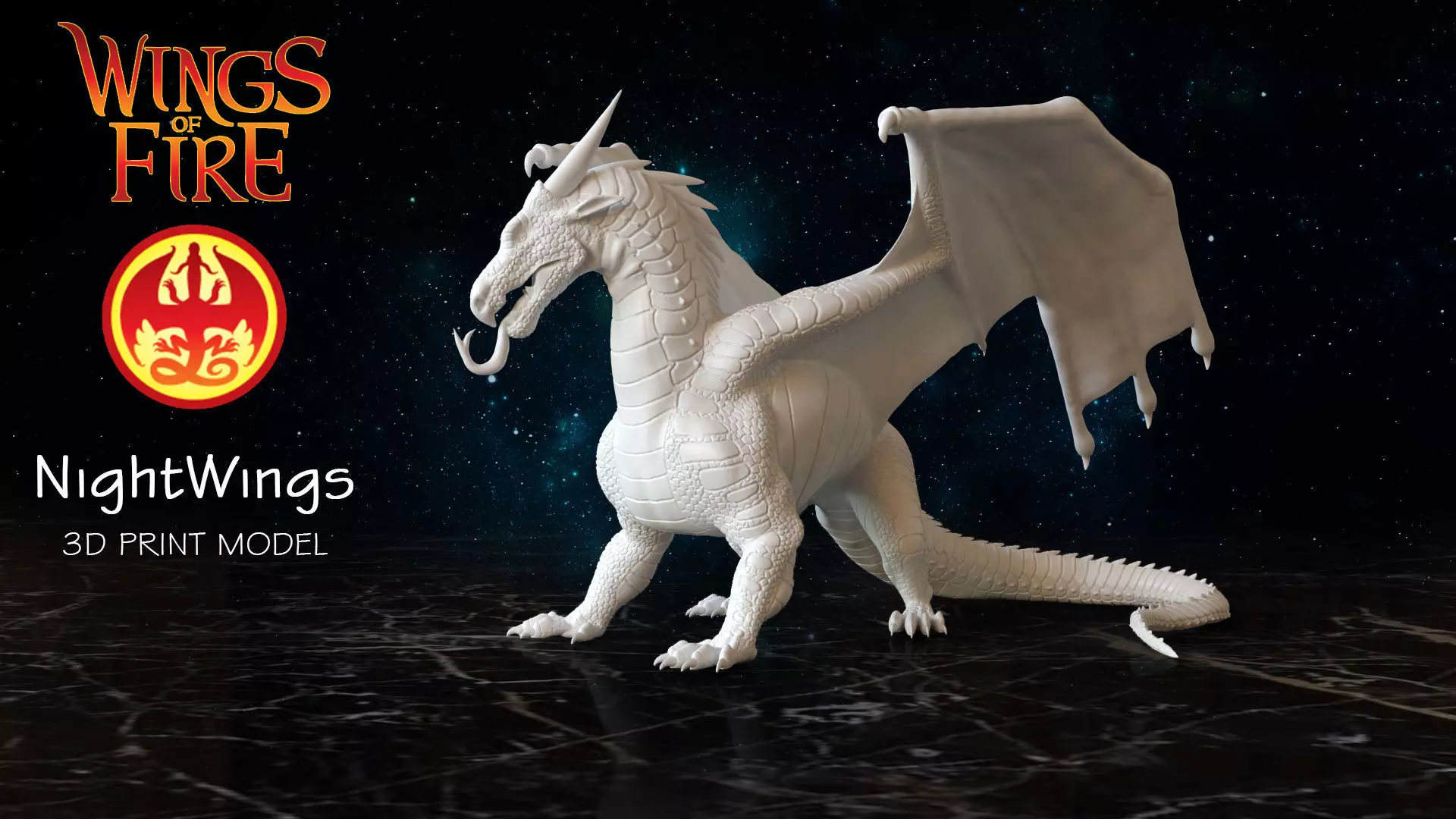 Greetings to all! I present to your attention a 3d model of a dragon from a series of books The Dragon Saga written by Tui Sutherland Wings of Fire This dragon model belongs to the Nightwing Tribe. The model was created for 3D printing and currently has dimensions of about 92x116x70 mm. Probably this may not be enough, and then of course you can increase the scale of this model before printing - I recommend doing this so as not to lose small details. But printing time will increase.