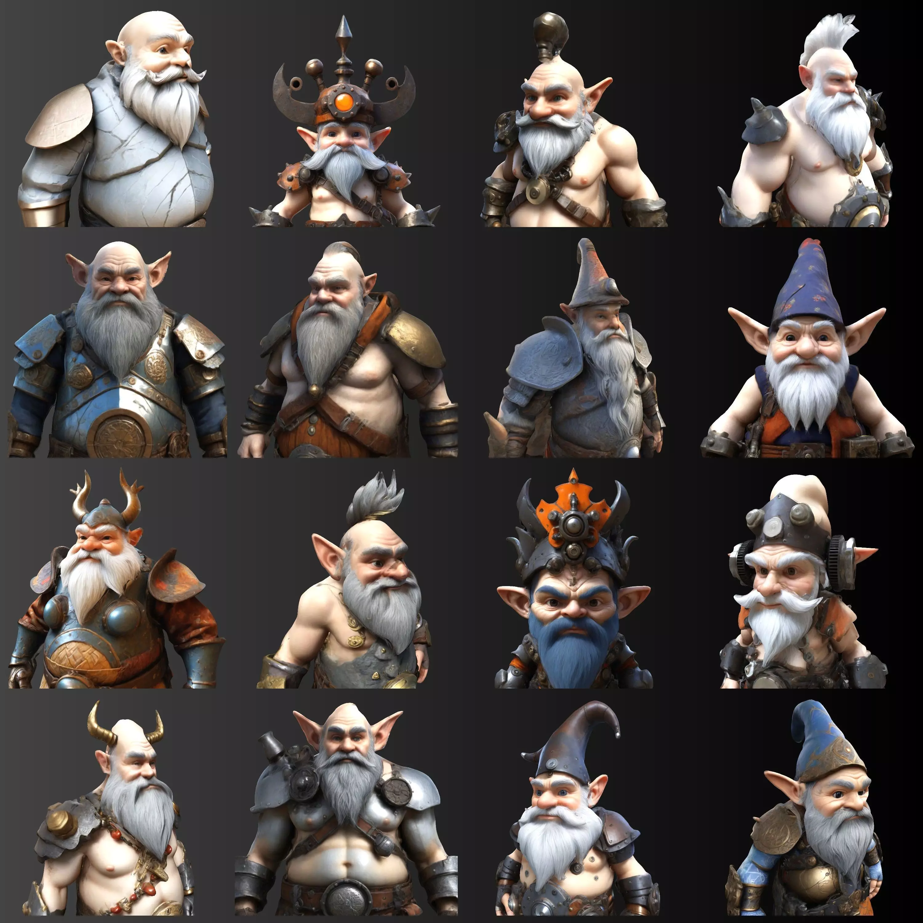 This collection features a stunning variety of dwarven archetypes, from battle-hardened warriors and mystical shamans to cunning engineers and wise elders. Every character showcases incredible attention to detail with unique armor designs, distinctive facial features, elaborate beards, and character-specific accessories that tell a story all their own.