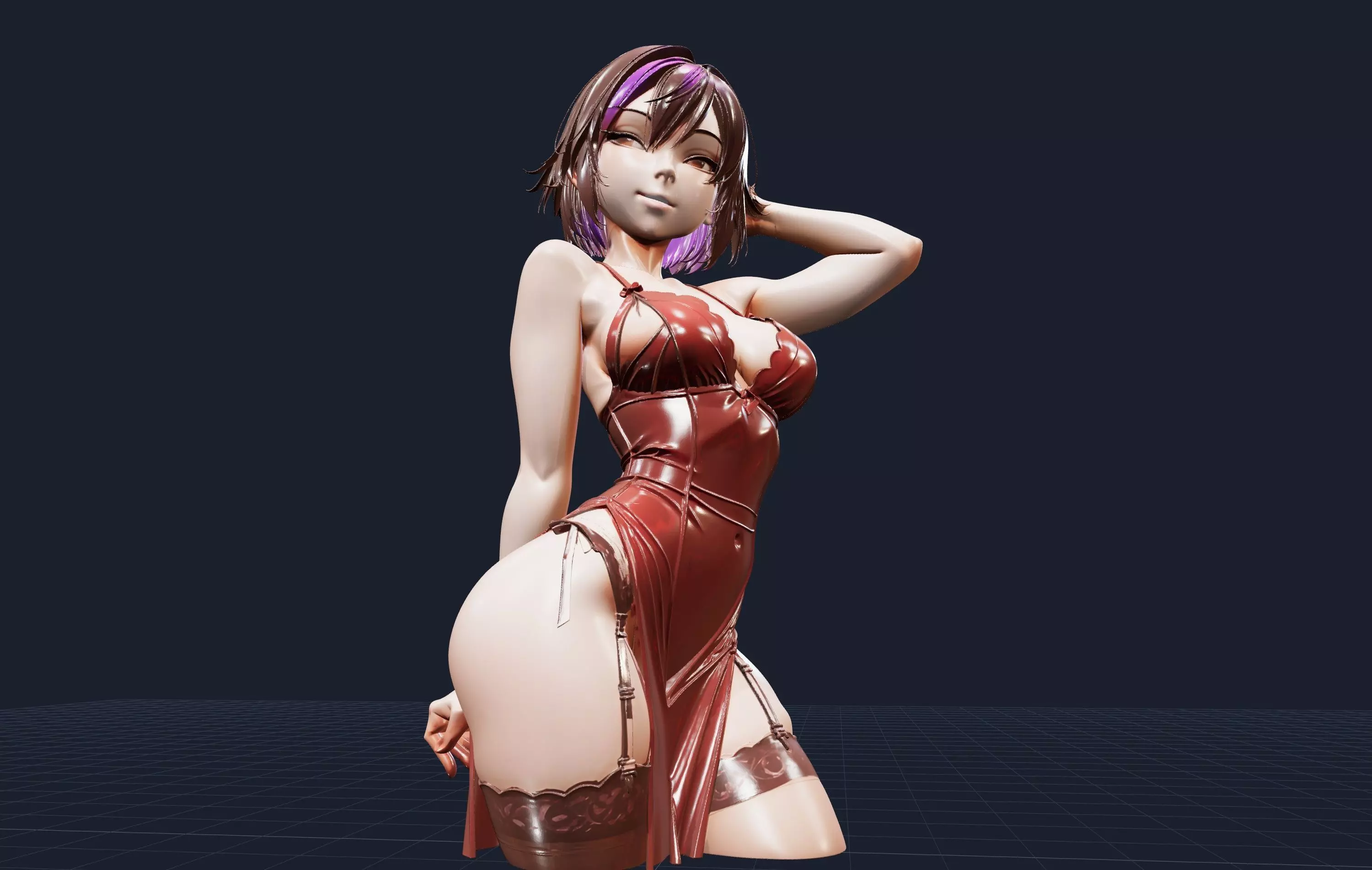 This piece was born from a long midnight session spent studying the way light reflects off satin fabrics in a neon lit room. I wanted to create a character that captures a perfect blend of mystery and charm while focusing heavily on the intricate textures of her lace stockings and the glossy finish of her vibrant red dress. Every curve and highlight was sculpted to ensure a high quality aesthetic that fits perfectly into any modern digital gallery or animation project. Her playful expression and the subtle purple highlights in her hair were inspired by urban fashion trends in Tokyo which adds a unique touch of personality to this stunning model.