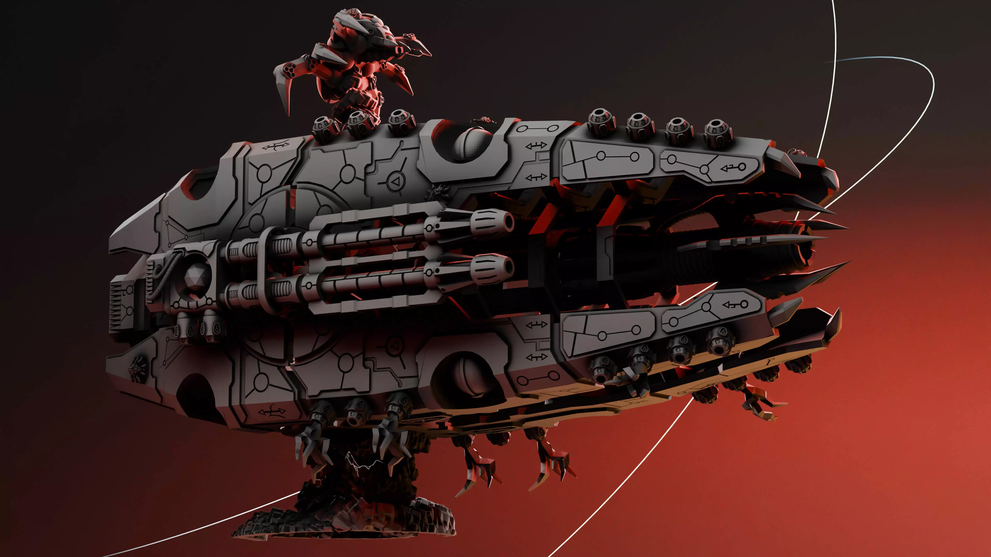 17/01/2025: Added a text fire base, optional base plate (with 3mm hole for a flight base), added a redesigned front core which is split into more sections for easy printing. Added a top plate with different drone support, added optional side plates along with two optional side cannons (dual barrel and single barrel options).