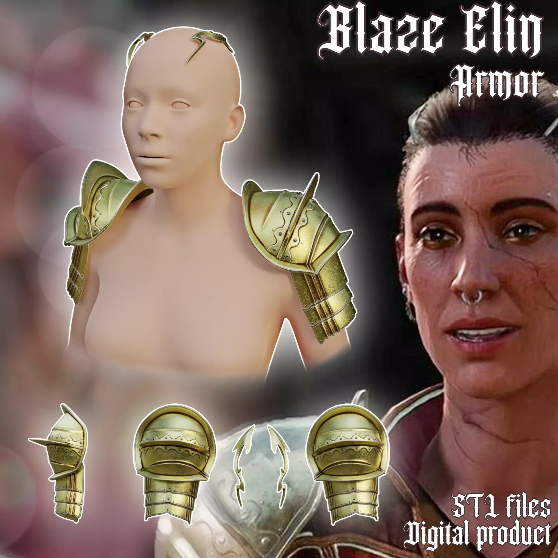 _________________THIS IS DIGITAL PRODUCT___________________________________NON-REFUNDABLE____________________________________STL FILES FOR 3D PRINTING________________Ready to print Blaze Elin sholuder Pads and headwear form Baldurs Gate 3. The supports required. Some parts need to be printed multiple times (file names contain the approximate quantity).Prepared for ENDER 3 v2 or similar 220x220x250mm size printer. Lots of division options for convenient printing. Designed for 165cm person.