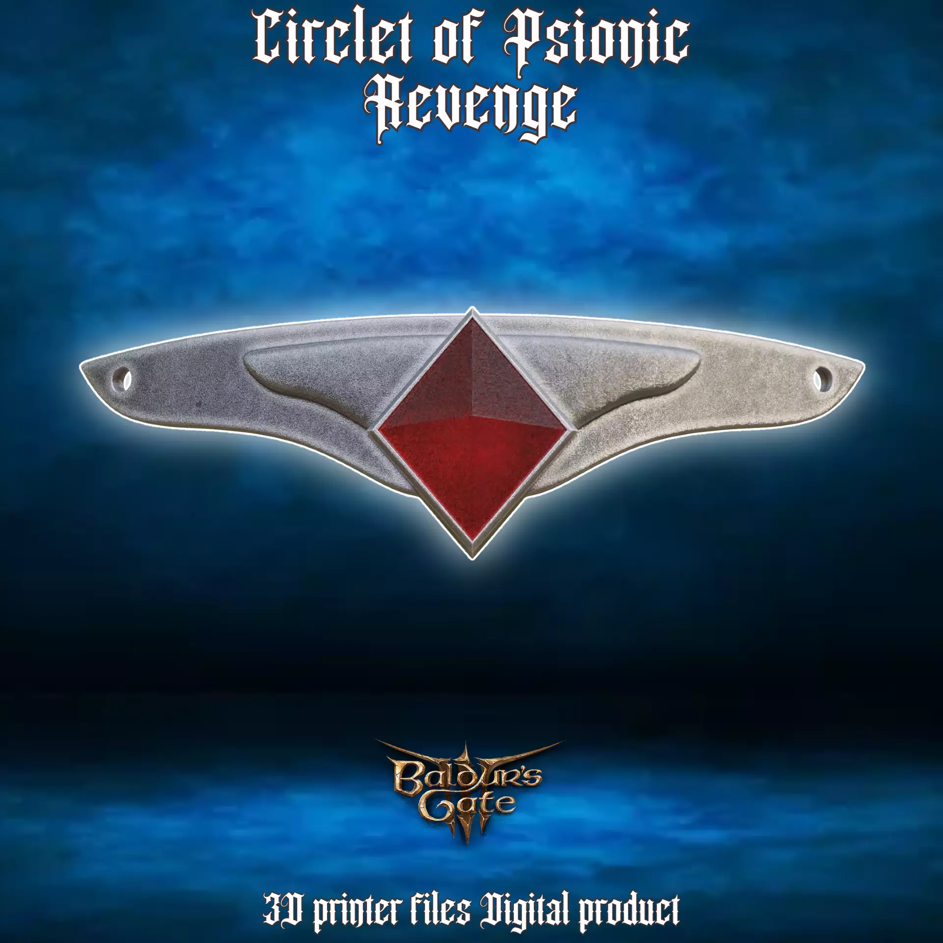 Files to print Circlet of Psionic Revenge from Baldurs Gate 3. The supports required. Some parts need to be printed multiple times (file names contain the approximate quantity).Ready for ENDER 3 v2 or similar 220x220x250mm size printer. Many division options for convenient printing included.