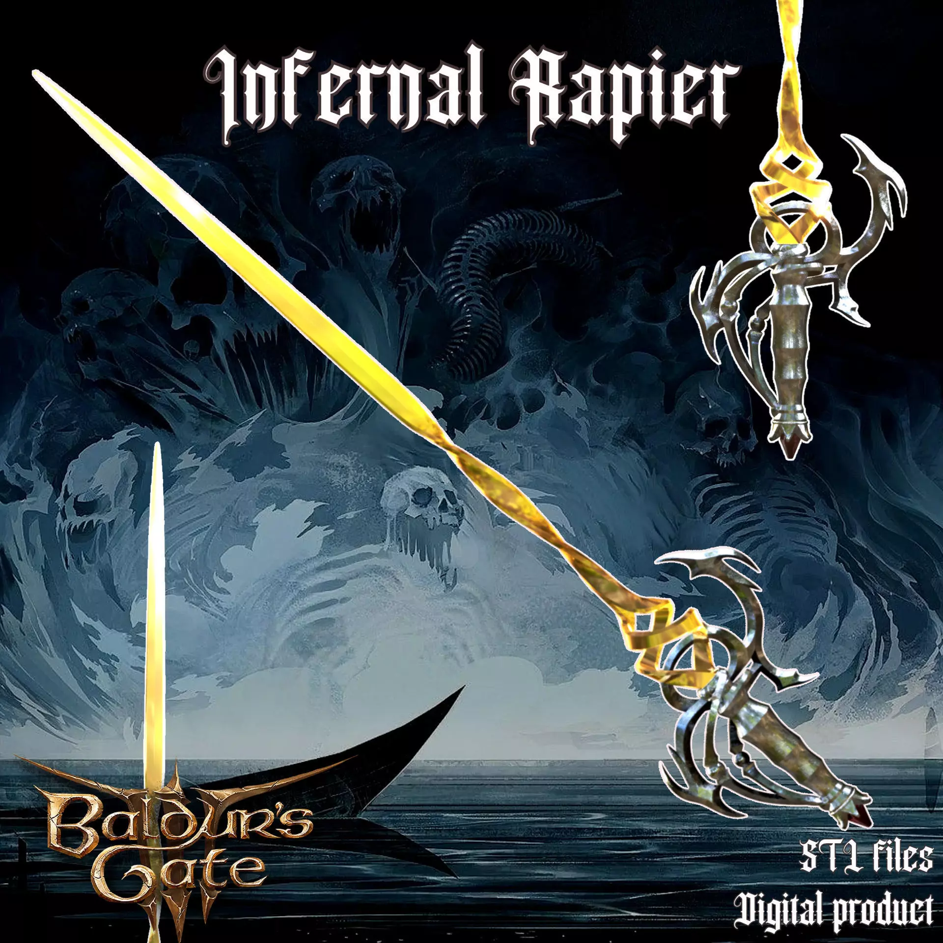 Ready to print Infernal Rapier from Baldurs Gate 3. Easy to print and assemble. Can be printed on Ender 3 (220x220x250mm) or similar size printer.