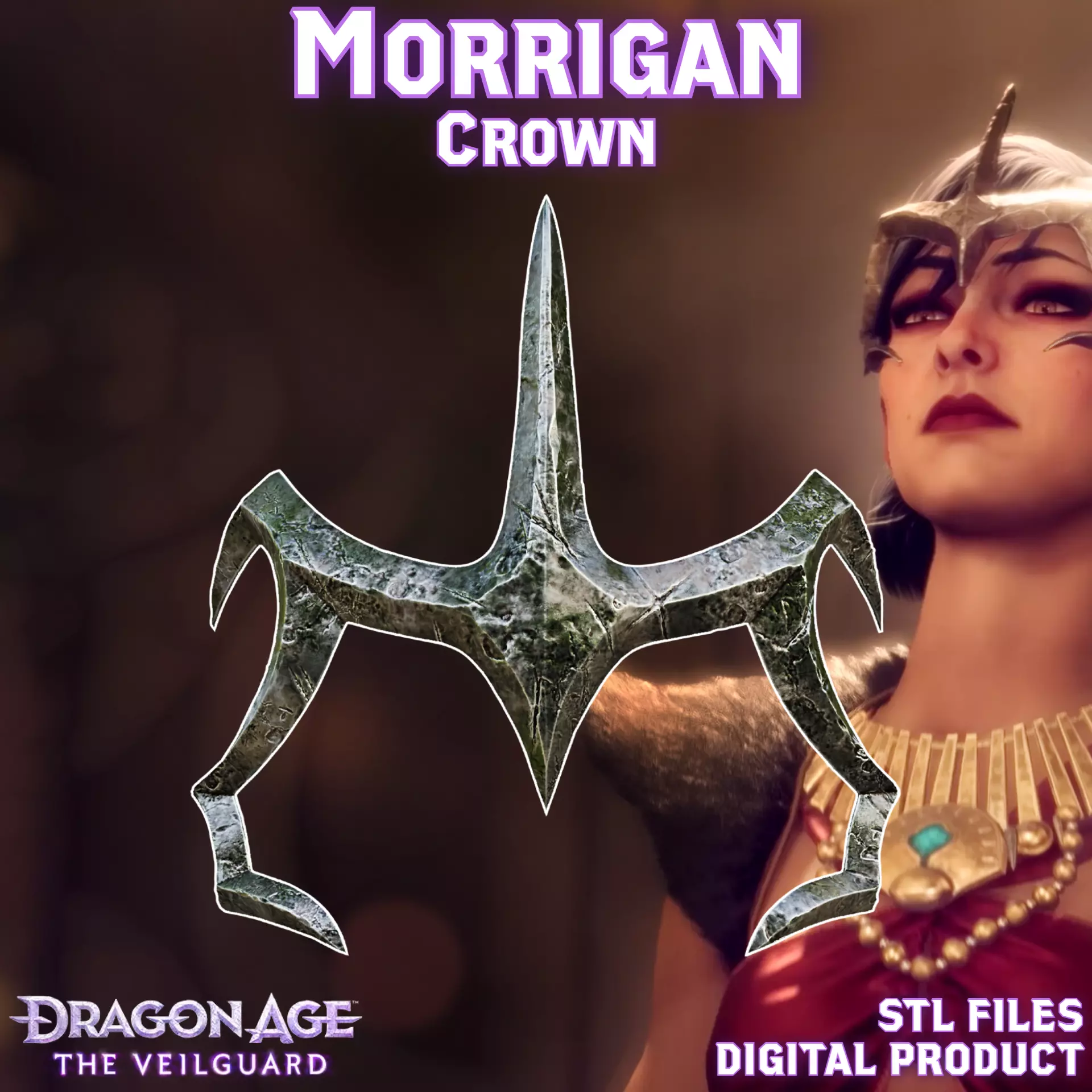Ready to print Morrigan's Crown from Dragon Age: The Veilguard. Designed for 55cm head circumference. The supports required.Prepared for ENDER 3 v2 or similar 220x220x250mm size printer.