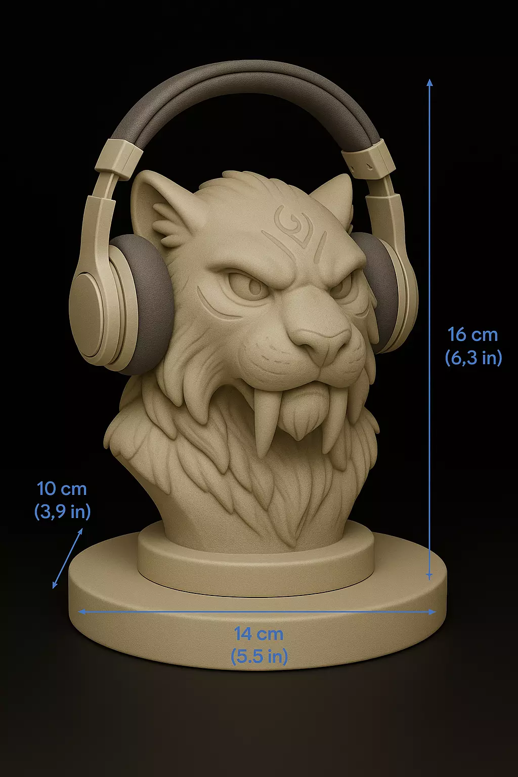 Introducing Fierce Majesty, a commanding 3D headphone holder bust modeled after a majestic saber-toothed tiger. This design is the ultimate fusion of power, artistry, and utility—perfect for those who want their workspace or gaming station to reflect boldness and elegance.