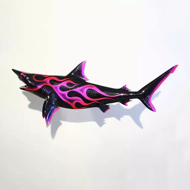 It refers to a visual design or representation featuring a shark with neon flames, often in colored neon LED light with red and blue tones. This type of design combines the image of a stylized shark with neon flame lighting effects, creating a striking and fiery visual effect. It is commonly used in artistic products, neon signs, or digital animations that merge the aggressive nature of a shark and the powerful visual element of neon fire.