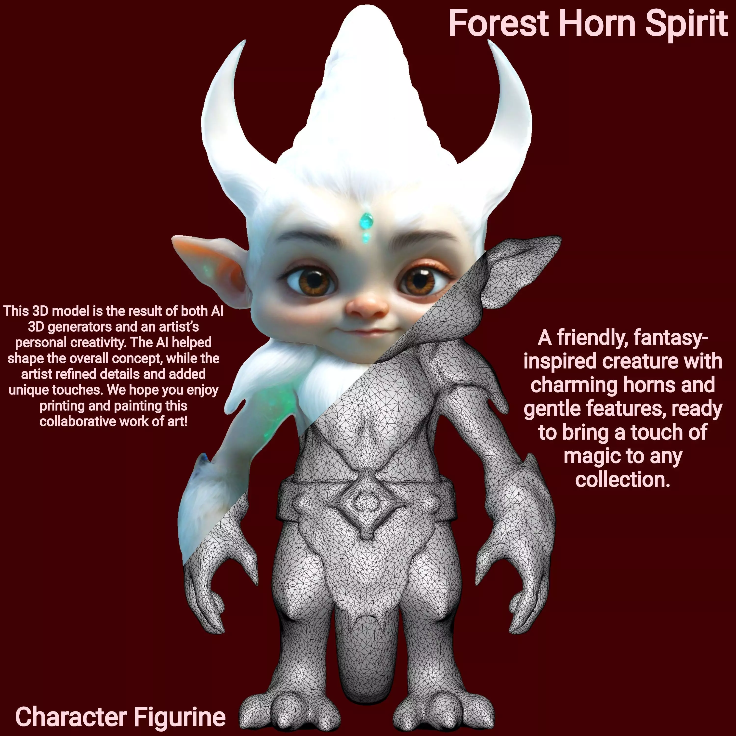 Meet this adorable little forest spirit with a whimsical twist! This creature features playful horns, a friendly face, and a soft, beard-like detail that gives it a charming, magical feel. Its design combines organic curves with fantasy elements, making it perfect for anyone who loves imaginative characters. Created through a blend of AI 3D generators and the artist’s own creativity, it’s a fun piece to print, paint, and display in your favorite spot.
