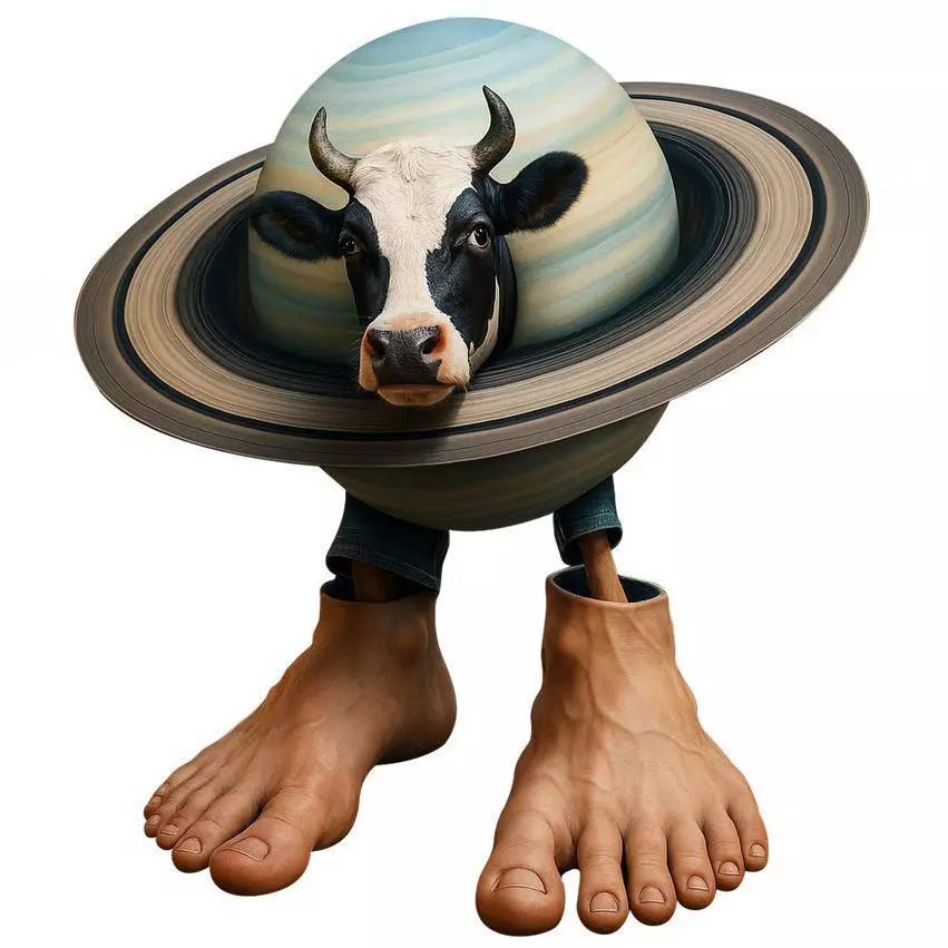 Galactic Brain Rot refers to a surreal, absurd meme trend blending cosmic and nonsensical elements, often featuring hybrid characters in viral animations and Garry's Mod content. La Vaca Saturno Saturnita (or La Vacca Saturno Saturnita) is a standout Italian Brainrot character—a massive cow head fused with Saturn's planetary body, complete with orbiting rings around its horns, tiny moonlets near the udders, and giant human feet for walking. It stands about 9.14 meters tall, weighs nearly 10 tons, and boasts planetary-scale powers like gravity manipulation via its mass, making it one of the strongest in its lore, though countered by foes like Nuclearo Dinossauro.