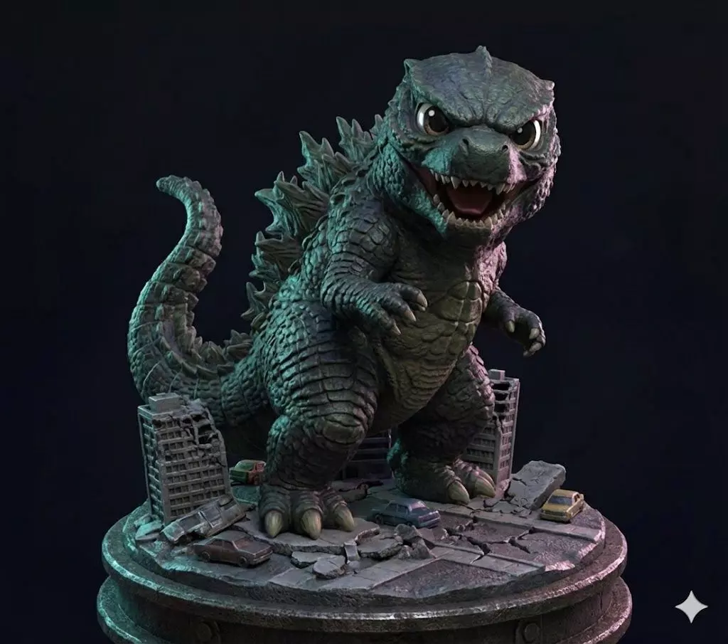 The undisputed King of the Monsters, Godzilla, emerges from the depths in an adorable yet destructive Chibi Deluxe Edition, ready for 3D printing.