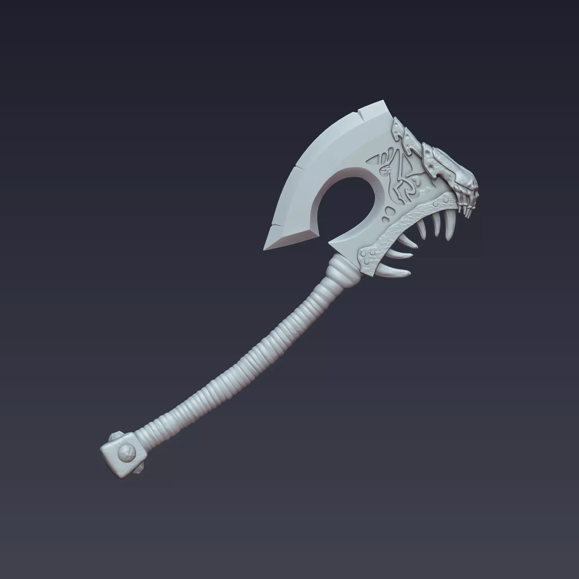 - Detailed Design: This 3D model captures the intricate details of Gorehowl, from its sharp curved blade to the iconic skeletal ornamentation, ensuring a faithful representation of the legendary weapon.