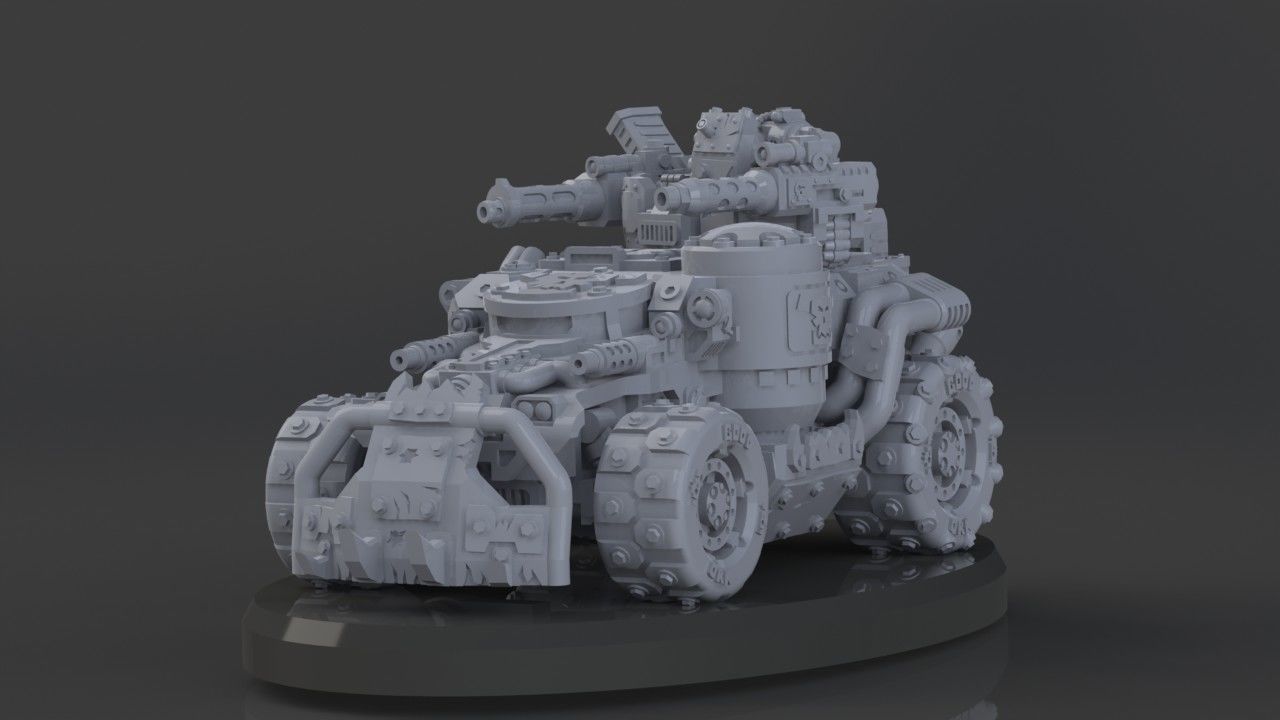 Model fits 150x95 oval base.Full model only for assembly example, print parts and glue them together.Gunner same in size with GW ork boy, you can swap his body parts with bits you like.