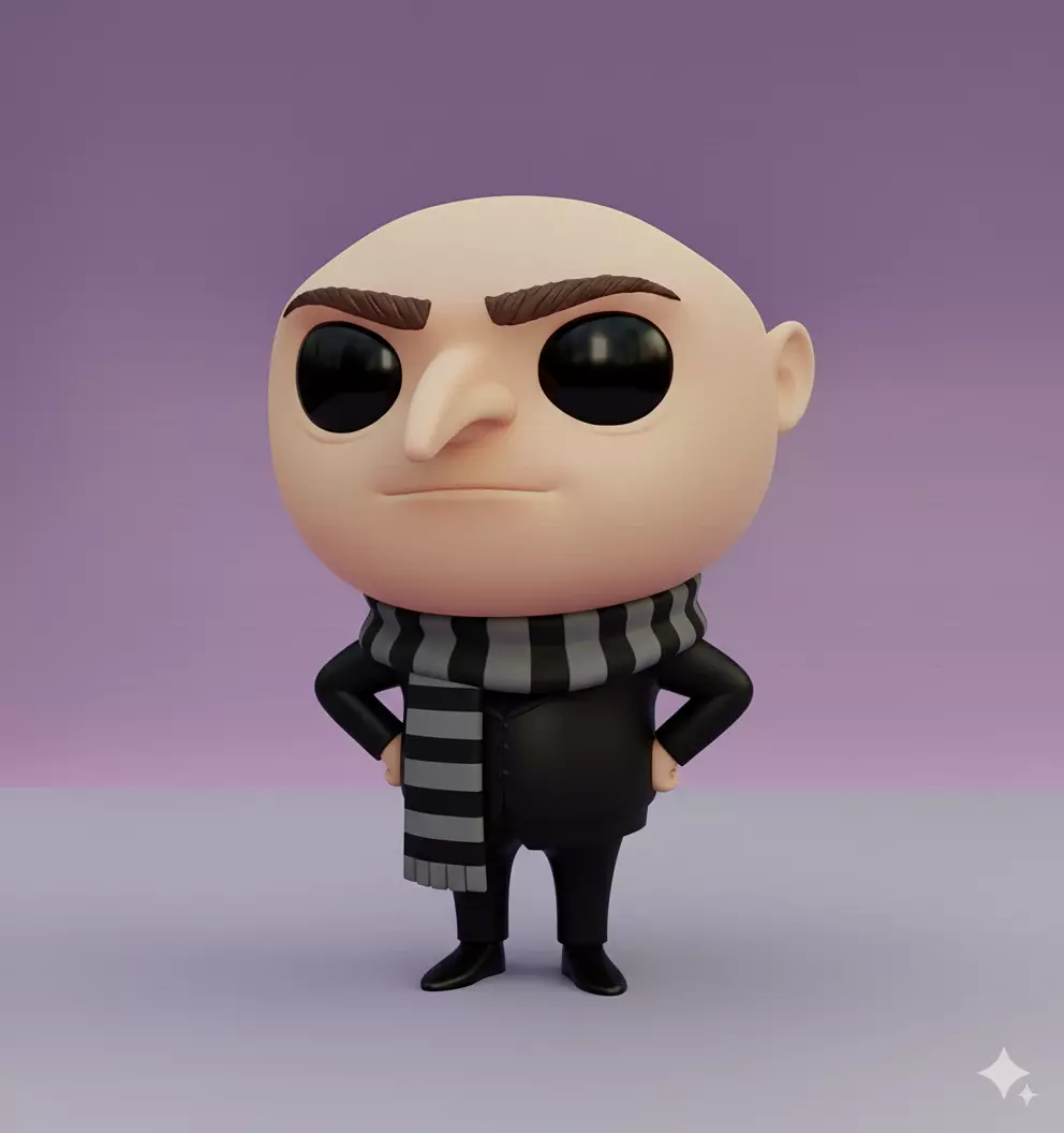 The most charismatic villain in film arrives in Kawaii Chibi form!Gru, from Despicable Me, appears in this adorable and collectible model, complete with his striped scarf, signature expression, and a fun yet endearing demeanor.