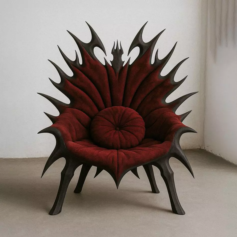 The Grunge Thorn Throne Vampiric Lounge Chair appears to be a custom or conceptual furniture piece blending gothic, grunge, and vampiric aesthetics, likely inspired by high-end throne-style lounge chairs with added dark fantasy elements. No exact product match exists in mainstream listings, but it evokes designs like fiberglass-cast fallen king thrones or devil-horn gothic chairs, reimagined with thorn motifs for a raw, edgy vibe.