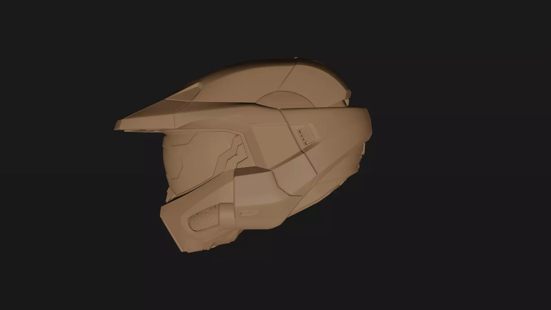 Halo Infinite Master chief helmet for 3d printing. While modeling this I wanted the model feel built. So I ended up breaking the helmet into individual pieces that made sense to me. It also makes sanding a hell of a lot easier. Each part keys with a dowel. I included the dowel model in the files but ended up using 6mm wood dowels from the hardware shop. The bolts holding the mouth piece are just hex head bolts. I made this as a non wearable prop but I dont think it would take much to make it one. Size wise its scaled to fit someone who wears a small motorcycle helmet. if you scale it up youll just have to be aware of the dowel size change and bolts for the mouth piece.Link to youtube-https://youtube.com/shorts/7btTw0G7ZGU?feature=share