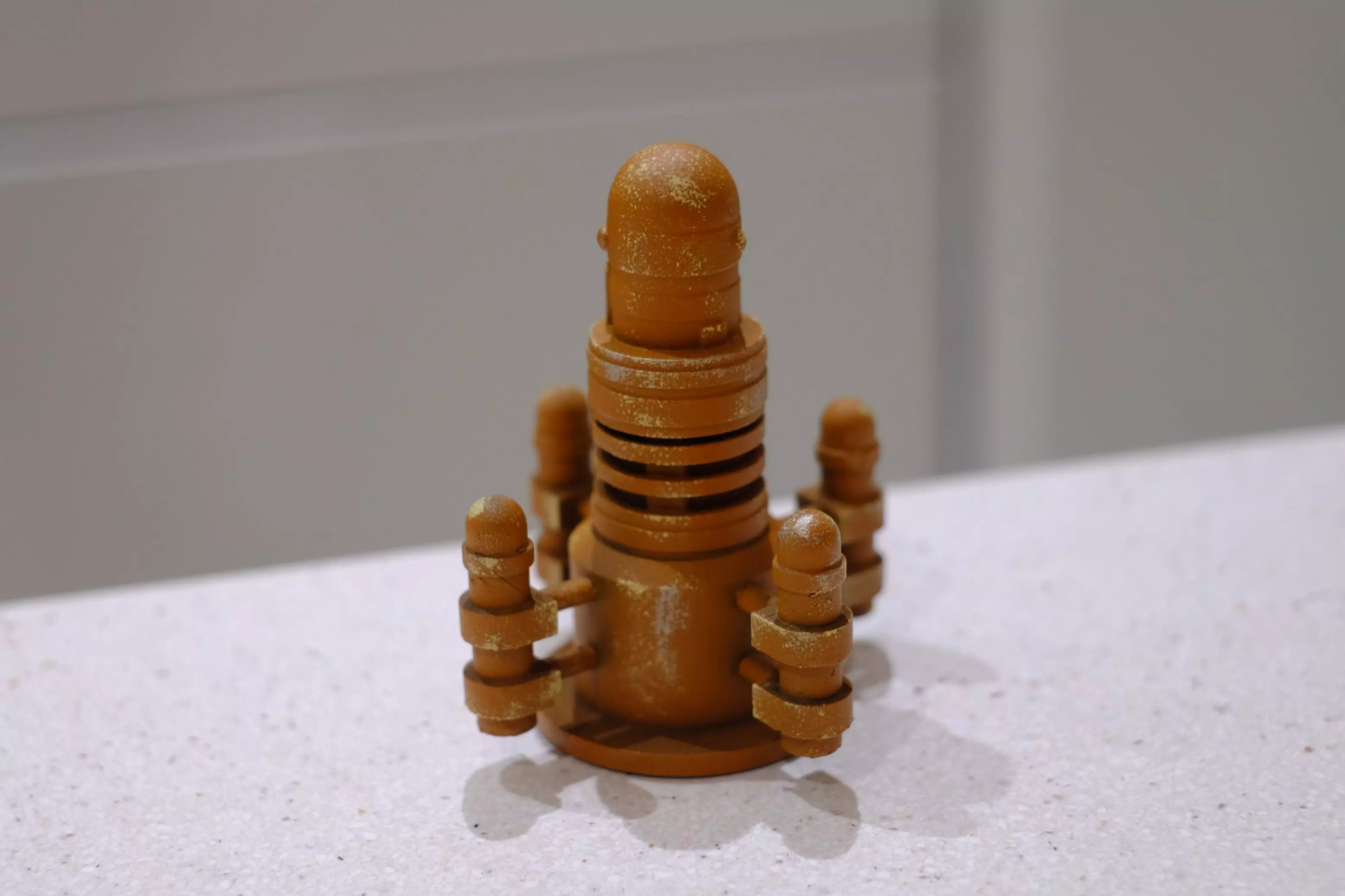 This piece is inspired by a design that I have seen in a video of the Kenobi series movie set. Consists of 5 pieces. 1 main body and 4 attachments that fits to the main piece with pegs. Side pieces needs to be glued in place. In the photos you can see a size comparison with a black series 6 inc Kuiil figure. Hope you like this design. Thanks for looking.