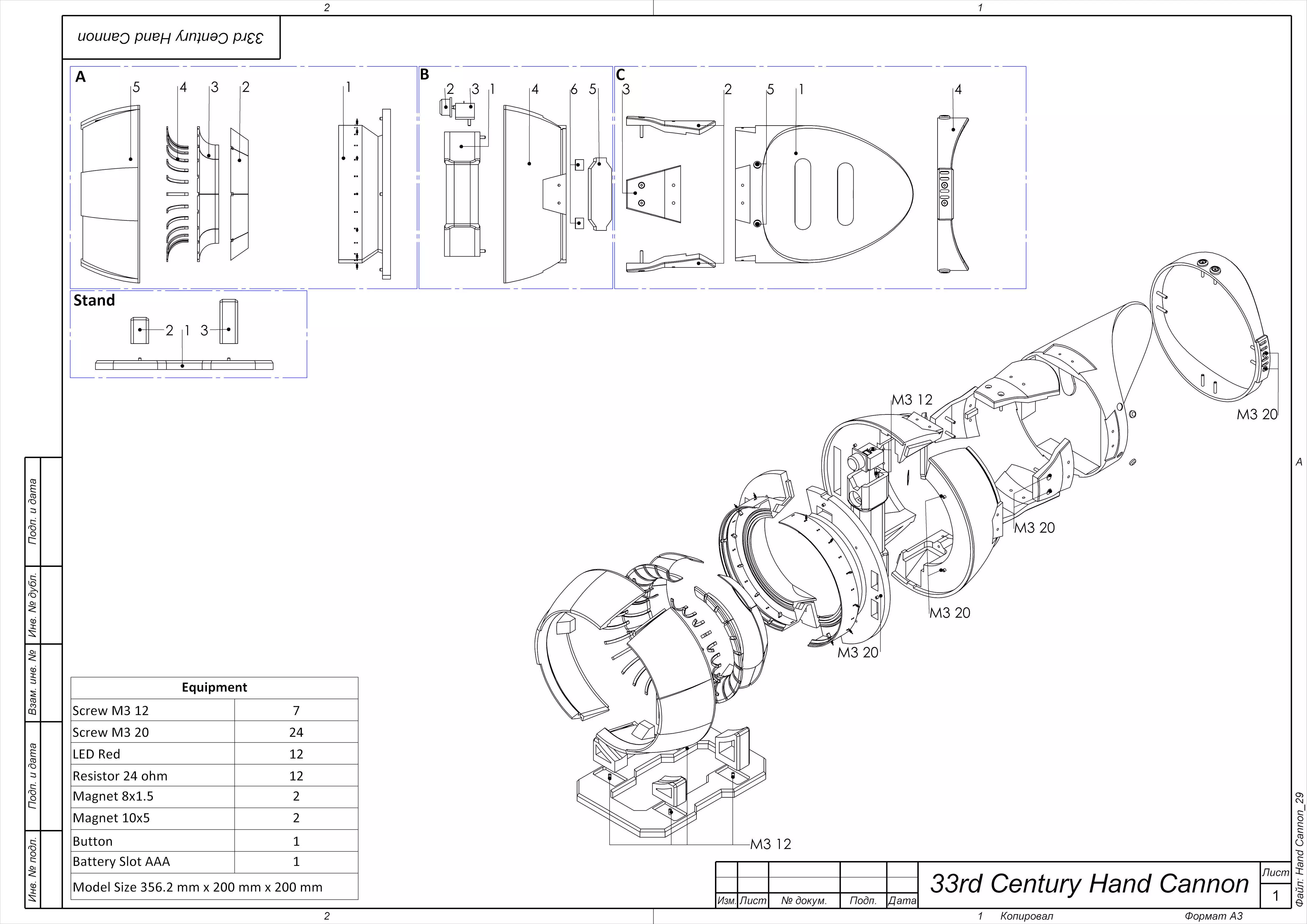 - 3 stl files - stand for Hand Cannon.