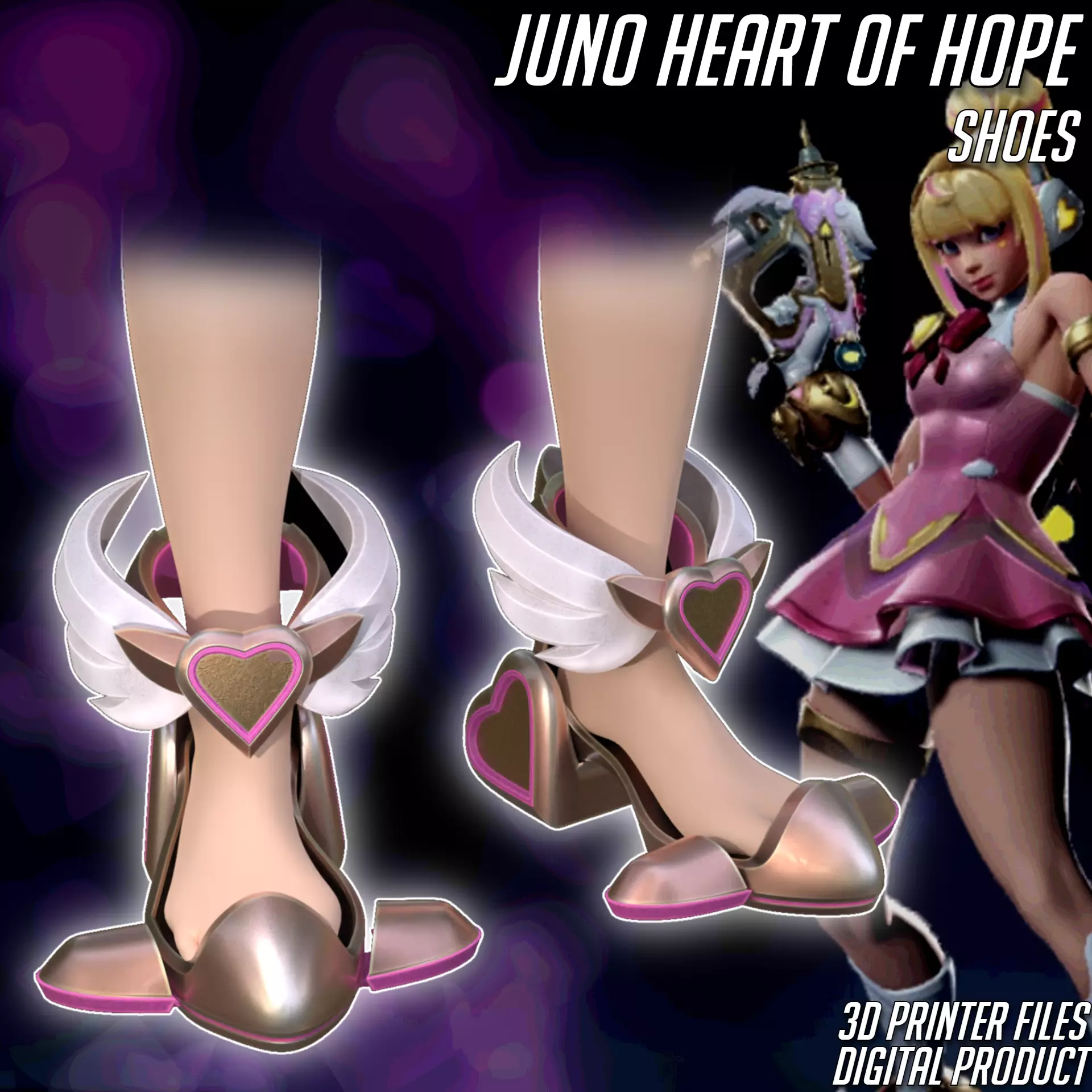 Files to print Heart of Hope Juno Shoes from Overwatch 2. The supports required. Some parts need to be printed multiple times (file names contain the approximate quantity).Ready for ENDER 3 v2 or similar 220x220x250mm size printer. Many division options for convenient printing included.