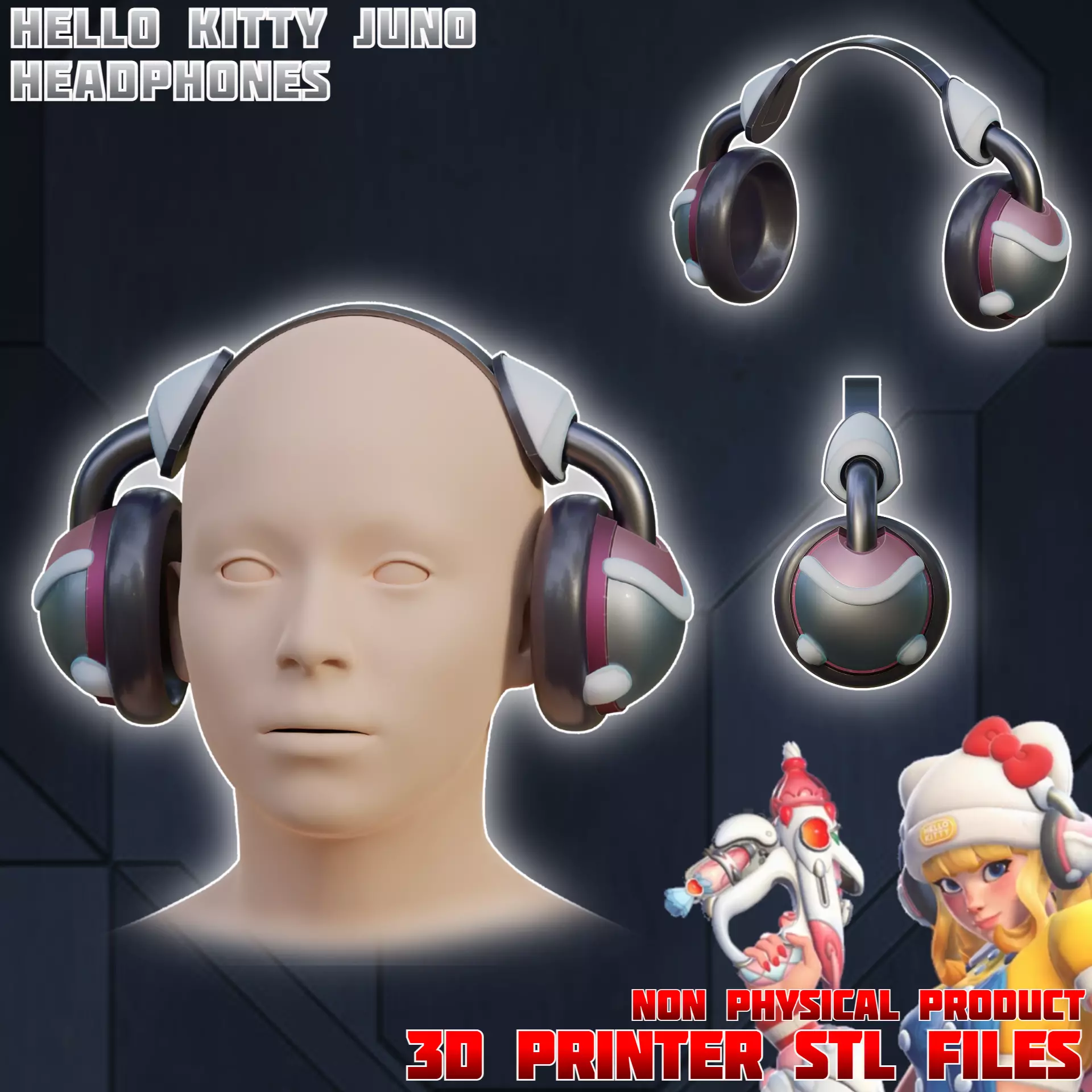 Files to print Hello Kitty Juno Cosplay Headphones from Overwatch.The supports required. Some parts need to be printed multiple times (file names contain the approximate quantity).Ready for ENDER 3 v2 or similar 220x220x250mm size printer. Many division options for convenient printing included.