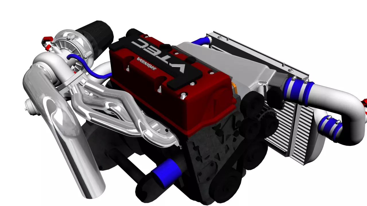 This 1:10 scale inline-4 turbocharged engine is a highly detailed, performance-inspired 3D model designed for enthusiasts of modern high-revving engines and custom forced-induction builds.
