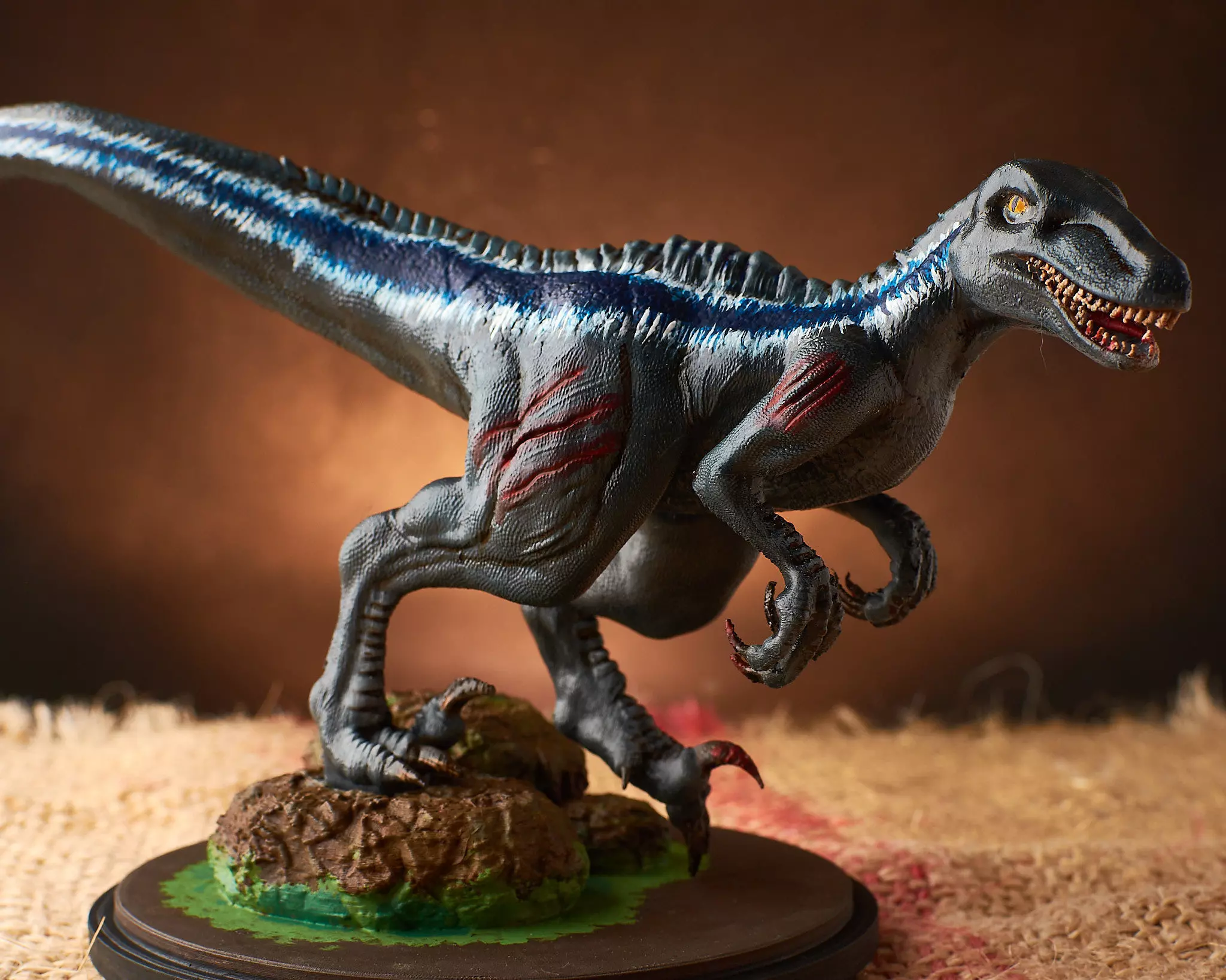 velociraptor, dinosaur, jurassic park, impression, detail, texture, skin, claws, pronounced claws, ferocious, pose.