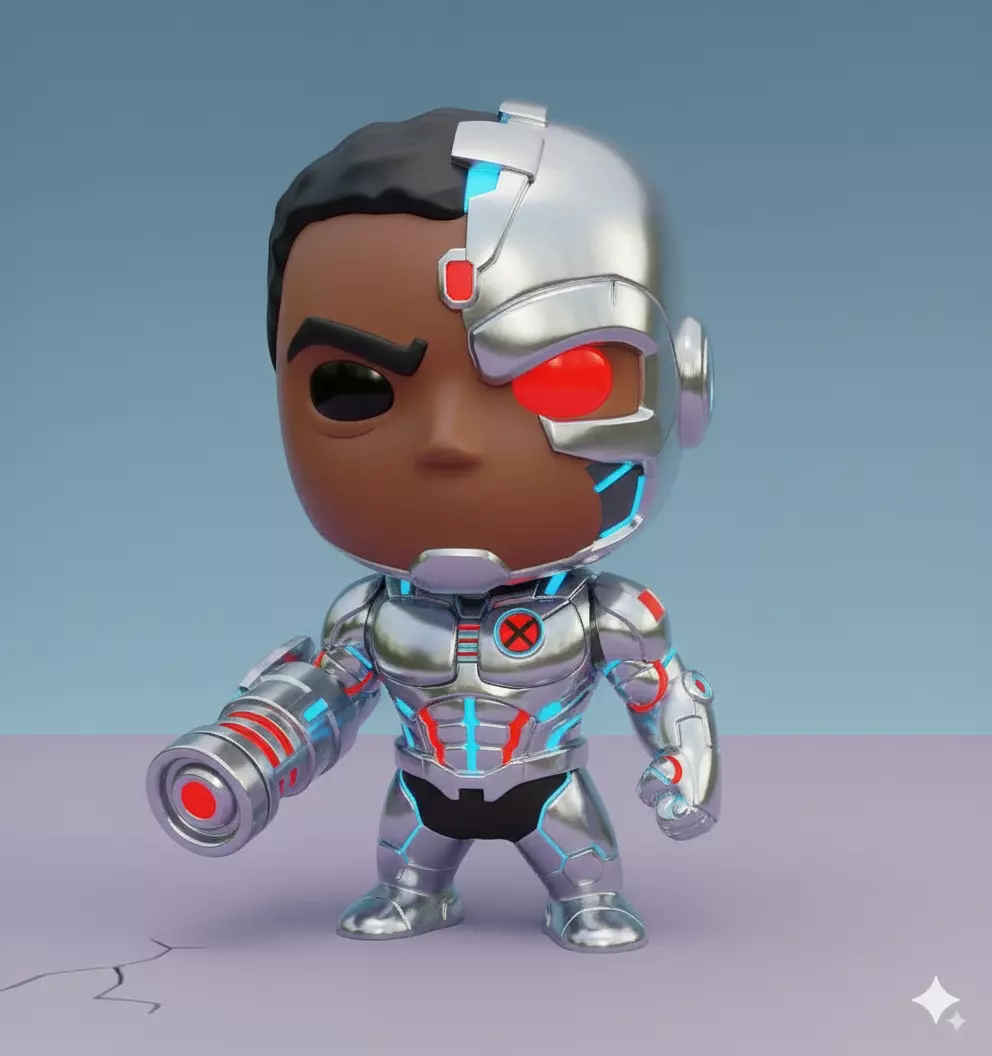 The powerful half-human, half-machine hero of the Justice League arrives in an adorable and collectible version. With his signature energy cannon and technological details, this design combines the strength of the cyber-hero with the cuteness of the kawaii chibi style.