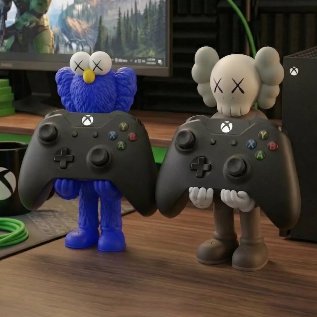 This is a 3D printing model so it has no texture and only comes in one solid piece.If you are looking for this piece with textures and cutting service, you can get it here:https://www.cgtrader.com/3d-models/character/man/kaws-companion-and-bff-stand-xbox-one-microsoft-textured