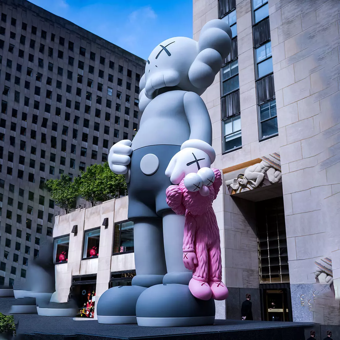KAWS is an American graffiti artist and designer known for his toys, paintings, and prints. Pop Art and culture permeate his cartoonish Companion series of figurines, which bear a resemblance to the works of Takashi Murakami. KAWS is a multi-faceted artist straddling the worlds of art and design in his prolific body of work that ranges from paintings, murals, and large-scale sculptures to product design and toy-making. His iconic “XX” signature has its roots in the beginning of his career as a street artist in the 1990s, when he began altering found advertisements by incorporating his own masterful paintings. Evoking the sensibilities of Pop artists like Andy Warhol and Claes Oldenburg, KAWS possesses a sophisticated humor and thoughtful interplay with consumer products and collaborations with global brands. He often draws inspiration and appropriates from popular culture animations to form a unique artistic vocabulary and influential cast of hybrid cartoon and human characters.