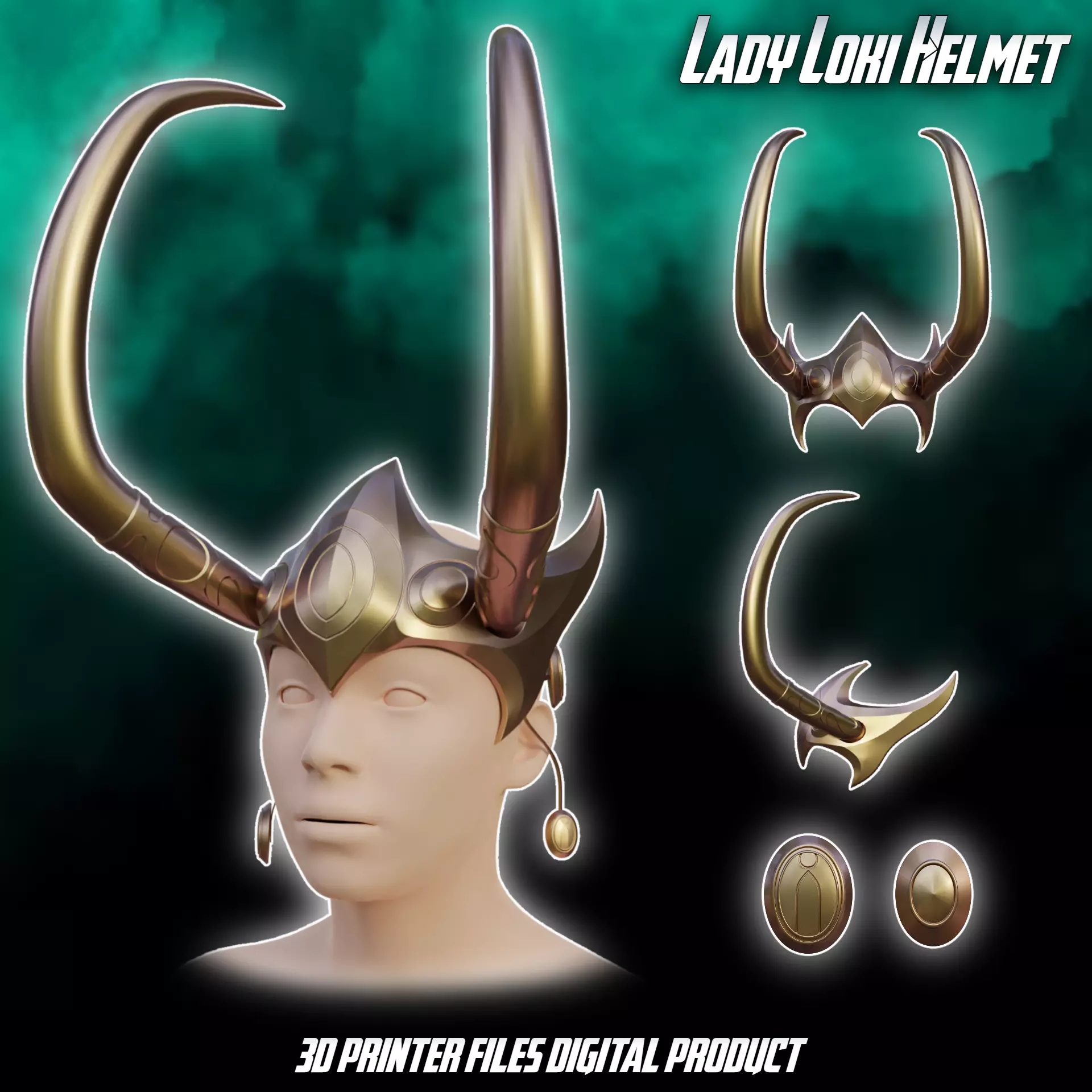 Files to print Lady Loki Cosplay Helmet from Marvel Rivals. The supports required. Some parts need to be printed multiple times (file names contain the approximate quantity).Ready for ENDER 3 v2 or similar 220x220x250mm size printer. Many division options for convenient printing included. Designed for 55cm head circumference.