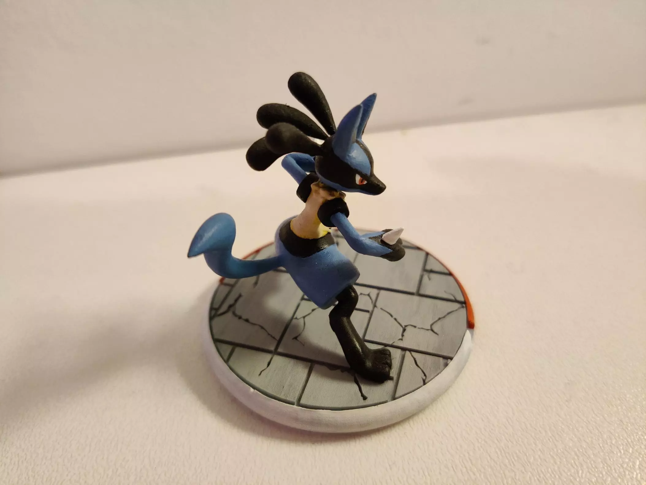 Lucario pokemon with themed base. Available with or without feet joints for a better connection with the base. Be carefull with supports because it's fragile, especially the hair.