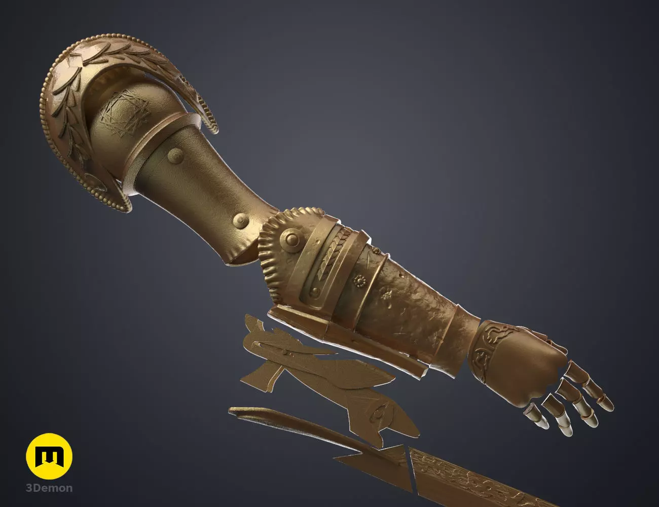 This is a digital 3D printable and wearable model of Malenia's prosthetic Arm from the critically acclaimed video game Elden Ring.