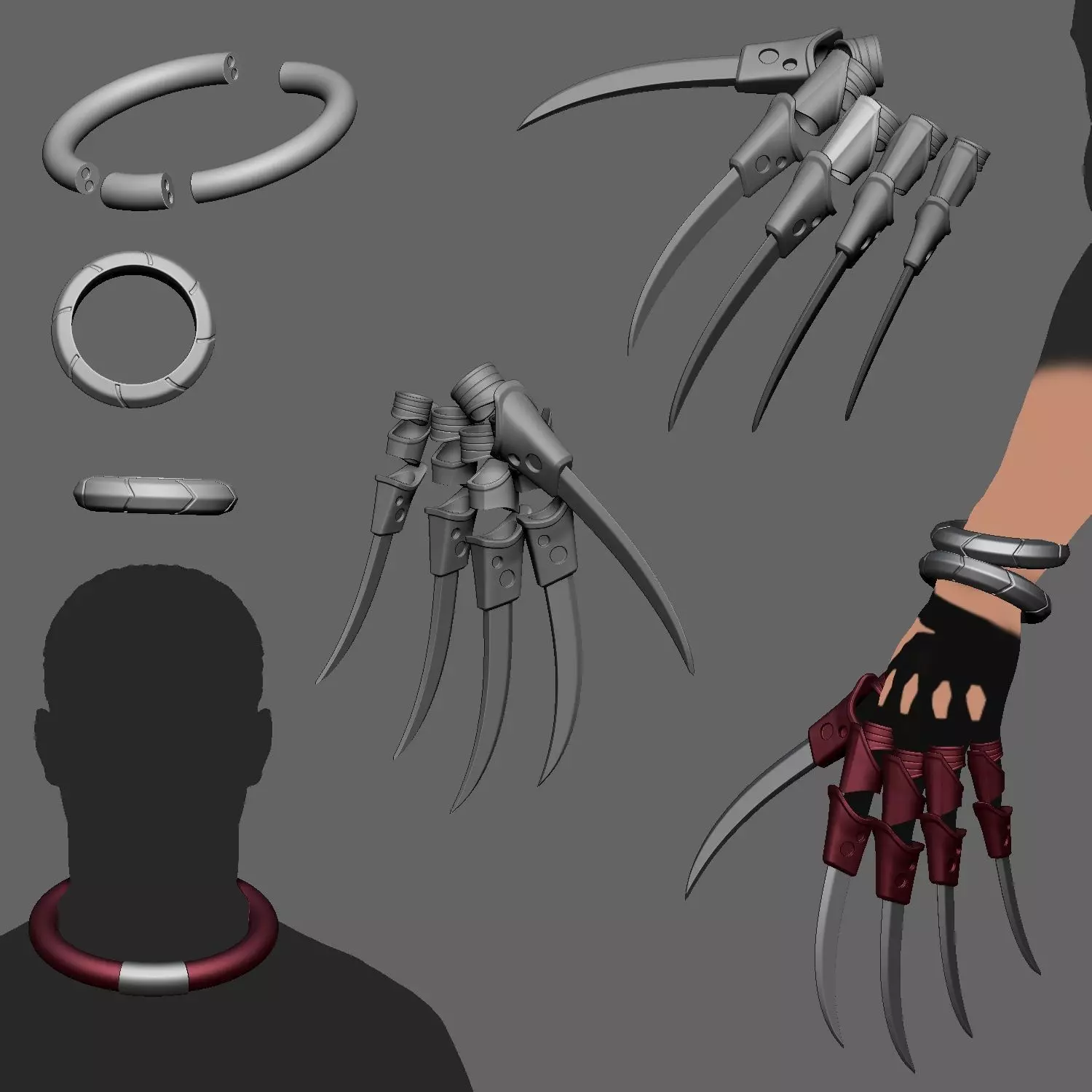 This cosplay prop set is inspired by Mankira’s Jinki equipment from Gachiakuta, including the claw weapons, communication necklace, and bracelet.Designed with accuracy and practicality in mind, this set is optimized for 3D printing, assembly, and painting, making it ideal for cosplay builds or display.
