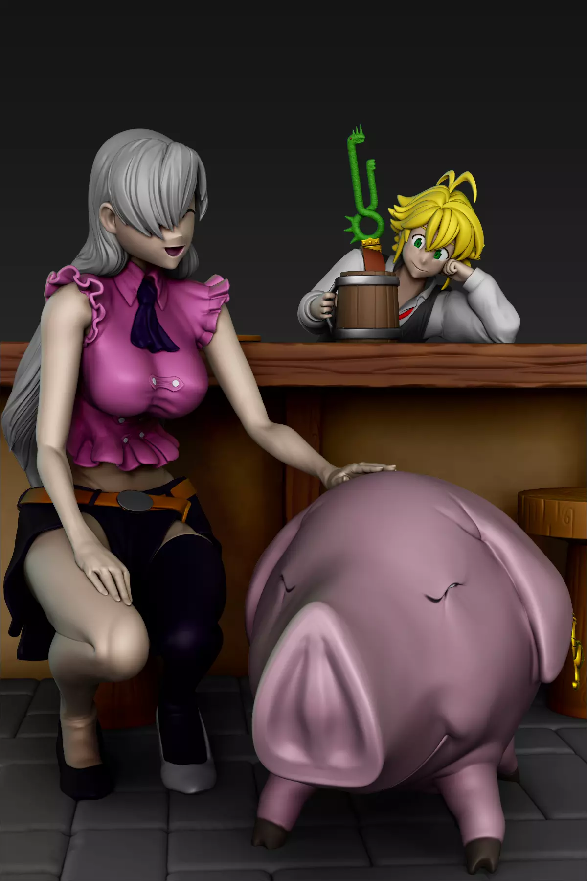• Elizabeth, Meliodas and Hawk - Nanatsu no Taizai (Seven deadly sins) is a 3D printable figure designed to capture the essence of a beloved anime character. It is created using ZBrush software and optimized for 3D printing technologies.