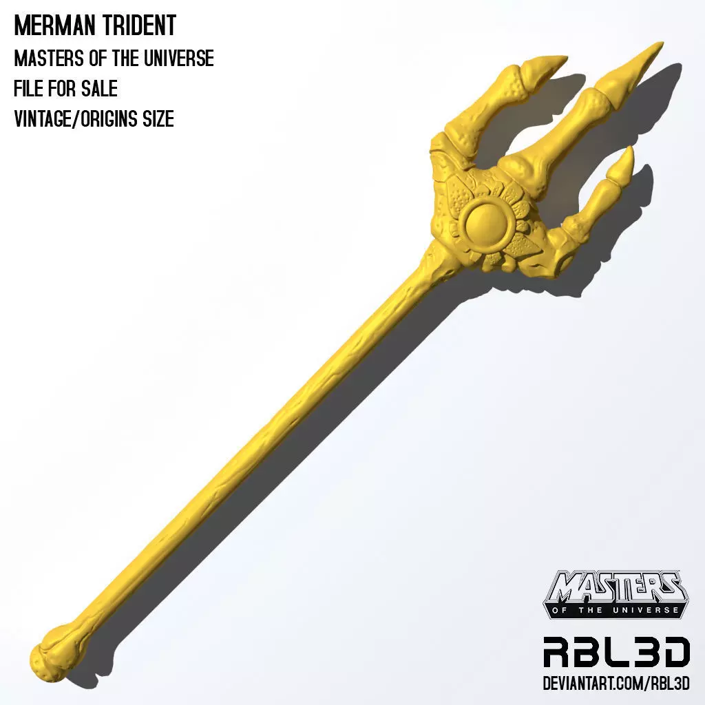 Merman's trident became a very popular accessory for that character, even more than his initial sword. The two recent Origins versions of Merman come only with the sword, so I decided to make this piece. This is an adapted weapon accessory from Masters of the Universe Classics line.