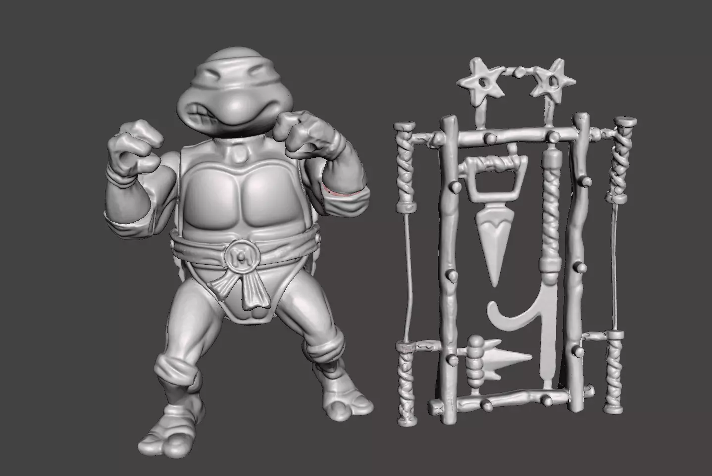 Michelangelo Vintage figure.Measures Approximately: 6 "Figure digitized for printing contains all its accessories.Ready to Print.Your individual joints for a better impression.To join the joints, heat a little water, submerge the piece to be joined for about 10 seconds and immediately connect the piece with the body.