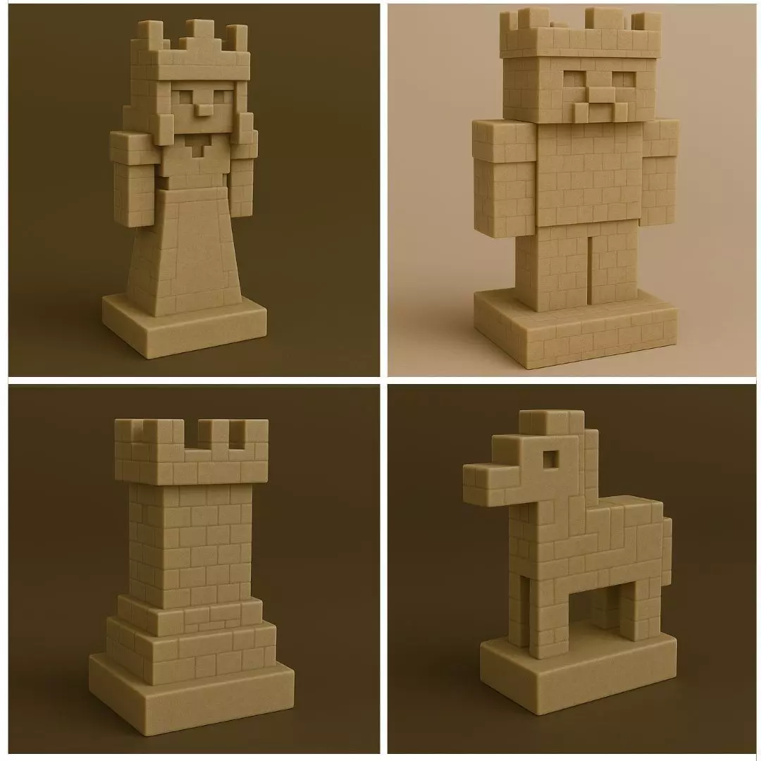 Bring your love for Minecraft and classic strategy games together with this 3D printable voxel-style chess set. Each chess piece is uniquely designed in pixelated form — including King, Queen, Bishop, Knight, Rook, and Pawn — and fits perfectly on the included blocky-style chess board. Ideal for game night, gifting, or display, this set combines nostalgia and modern creativity. Fully printable at home and supports standard 3D printer formats.
