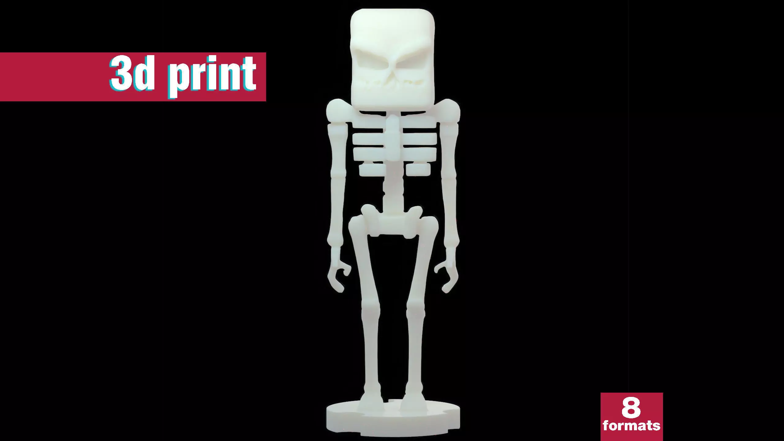 Bring your voxel world to life with this stylized Minecraft-inspired skeleton model! With its bold blocky aesthetic and menacing stance, this character makes the perfect addition to any voxel art collection or game-themed display. The model features clean, optimized geometry ideal for 3D printing, with a sturdy base for display stability.